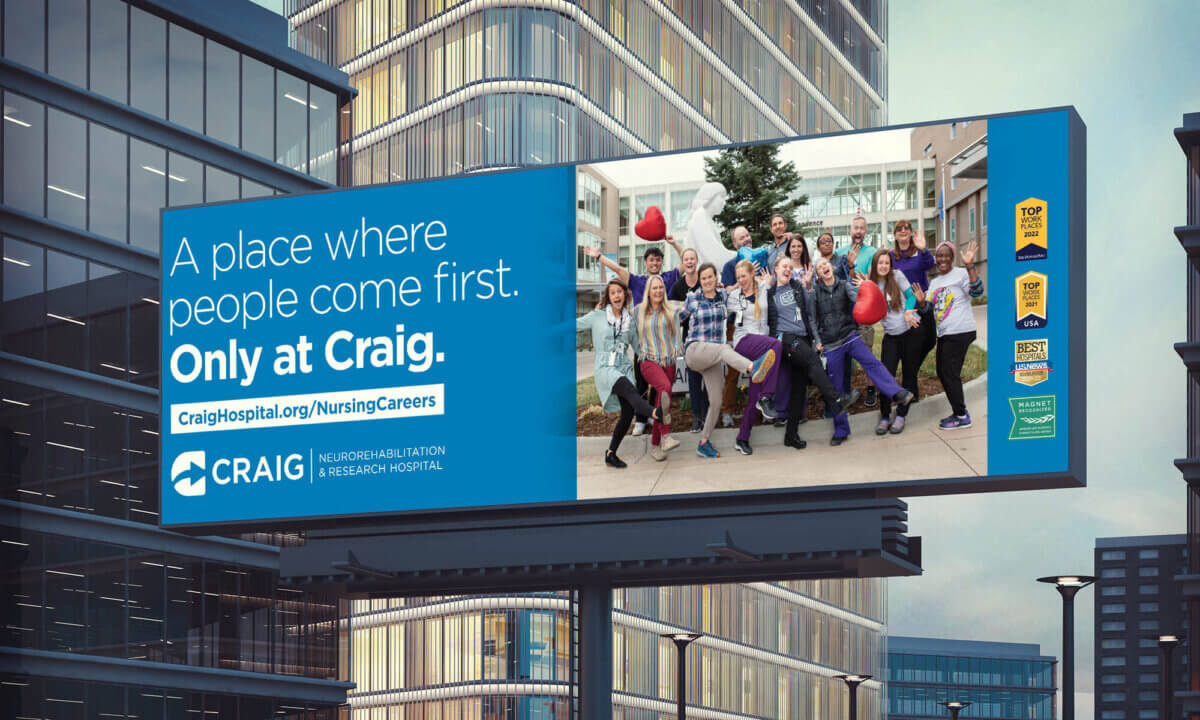 For Craig, their recruitment campaign stemmed from the “Only at Craig” branding campaign COHN collaborated with their team on. For nearly three months, the COHN team learned everything it could about the Craig Hospital mission, history, people, points of distinction, service offerings, and more. After coming to the finalized campaign direction, it was then used to create messaging for nursing careers in Colorado.
